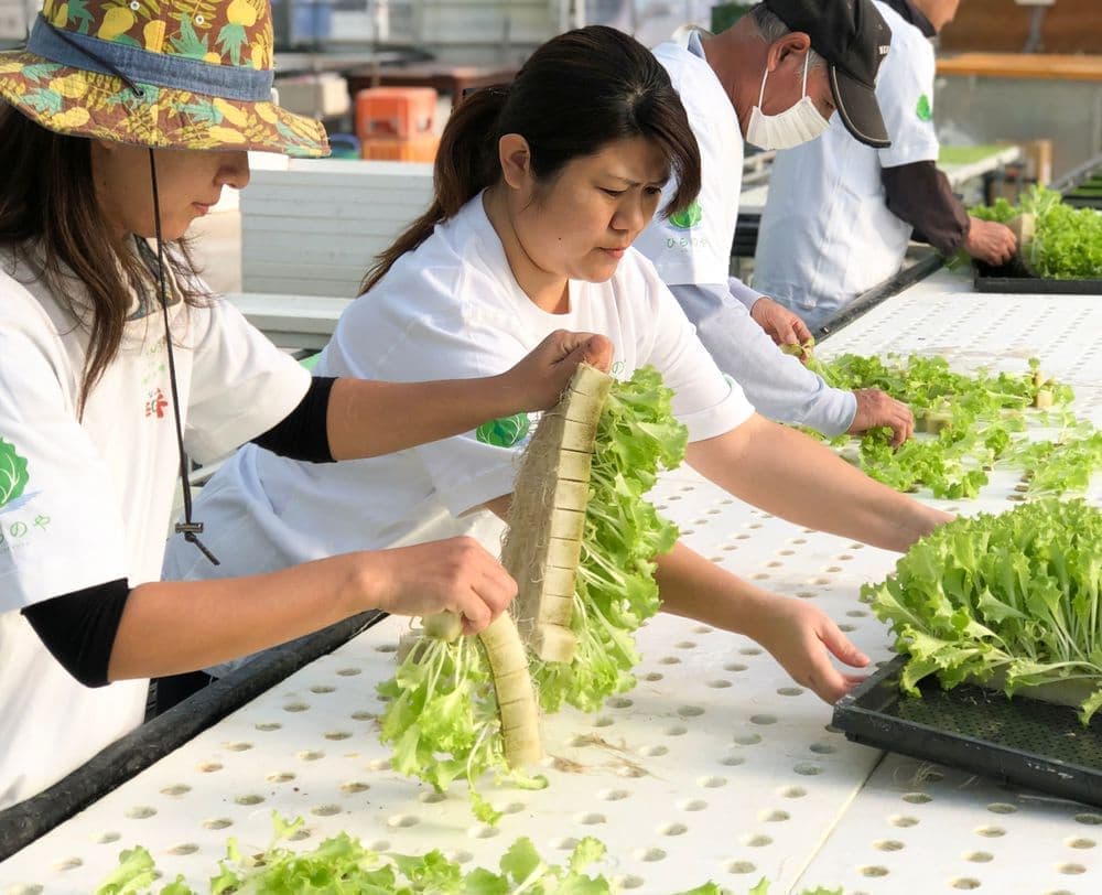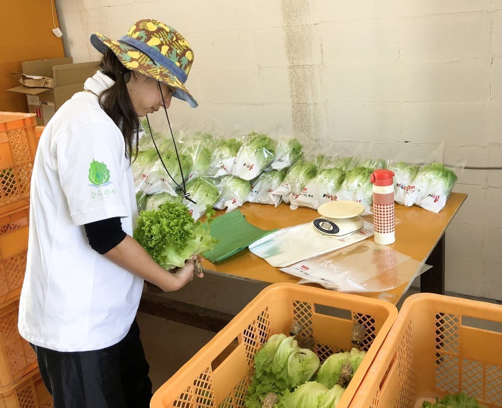 収穫した野菜を1 つ1つ丁寧に包装します。